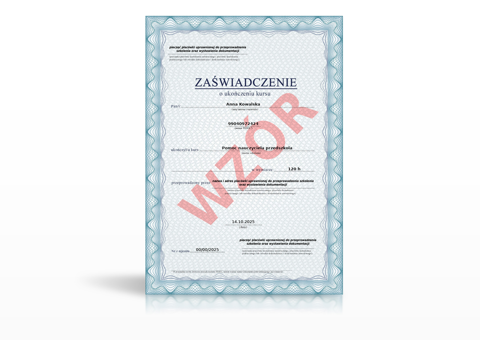 Kurs może być realizowany w oparciu o przepis art. 117 ust. 1a pkt 5 ustawy Prawo oświatowe. Program kursu został opracowany tak, aby odpowiadał rzeczywistym potrzebom placówek przedszkolnych oraz standardom edukacji ustawicznej.